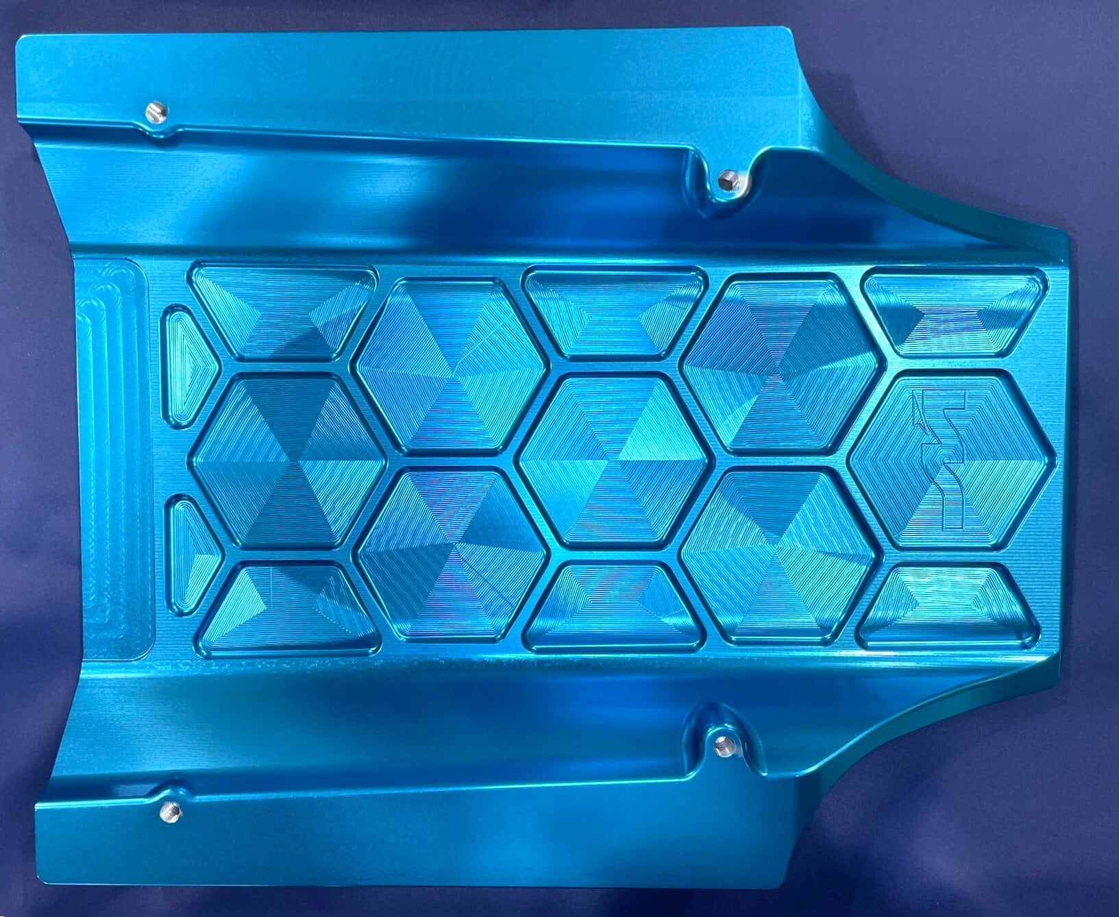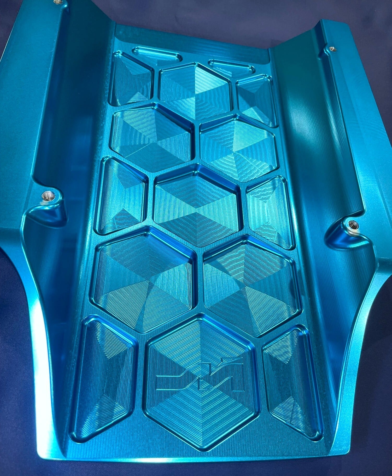 The shape is the same as the original, but the machined aluminum makes it a high-strength ride plate.